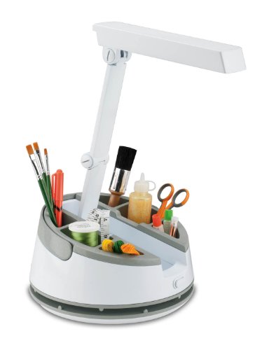 Collapsible shade and arm for compact design and portability Cord storage reel and clip for easy storage with extra outlet on the base for your tools Removable trays for easy clean-up and organization Complete detail and color accuracy Reduces glare and eyestrain Includes energy efficient 13wHD tube - rated to last up to 10,000 hours The ultimate in portability, functionality and design, the OttLite® Craft Caddy Lamp was designed by and for people who LOVE to create! Notions not included. Retail Price .95